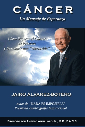 CÁNCER - Un Mensaje de Esperanza - es un libro muy alentador e informativo basado en las experiencias de la vida de Jairo Álvarez-Botero, un sobreviviente de cáncer de próstata. Éste es un tema que la mayoría de los hombres temen a causa de los innumerables mitos, rumores, desinformación o ignorancia. A pesar que vivimos en la época médica más avanzada de la historia, nos falta del sentido común y de responsabilidad para hacernos chequeos regulares de salud de la próstata. El hombre está jugando a la Ruleta Rusa con este mal que es un verdadero “asesino silencioso”. Cada capítulo de esta obra ayudará a los hombres para superar el cáncer de próstata y a llegar a lo que el autor llama “nuevavida”. Este libro es muy informativo y tiene explicaciones prácticas y valiosas sobre las decisiones que deben tomarse para mejorar la calidad de los pacientes. Además, proporcionará datos muy útiles para los familiares y para aquellos que tuvieron la enfermedad y están en proceso de recuperación. Jairo Álvarez-Botero, ha hecho un gran esfuerzo para escribir su historia con el fin de salvar miles de vidas que se perderán si su mensaje no es oído, por no hablar de la paz y la felicidad que este libro aportará a sus familiares y amigos. Recomiendo a todos leer esta obra. Bob Brooks - Presidente Bob Brooks Escuela de Bienes Raíces y Seguros, Inc. - Sobreviviente de cáncer de próstata – www.JairoAlvarezBotero.com